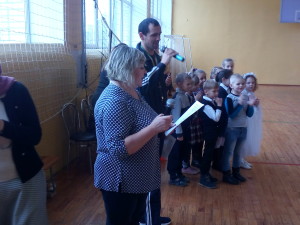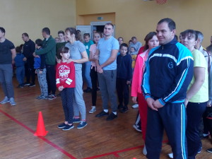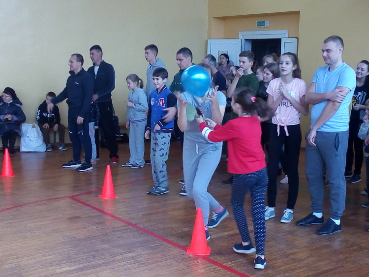 Далей пачалося спартыўнае спаборніцтва каманд, у састаў якіх уваходзілі дзеці і іх бацькі.